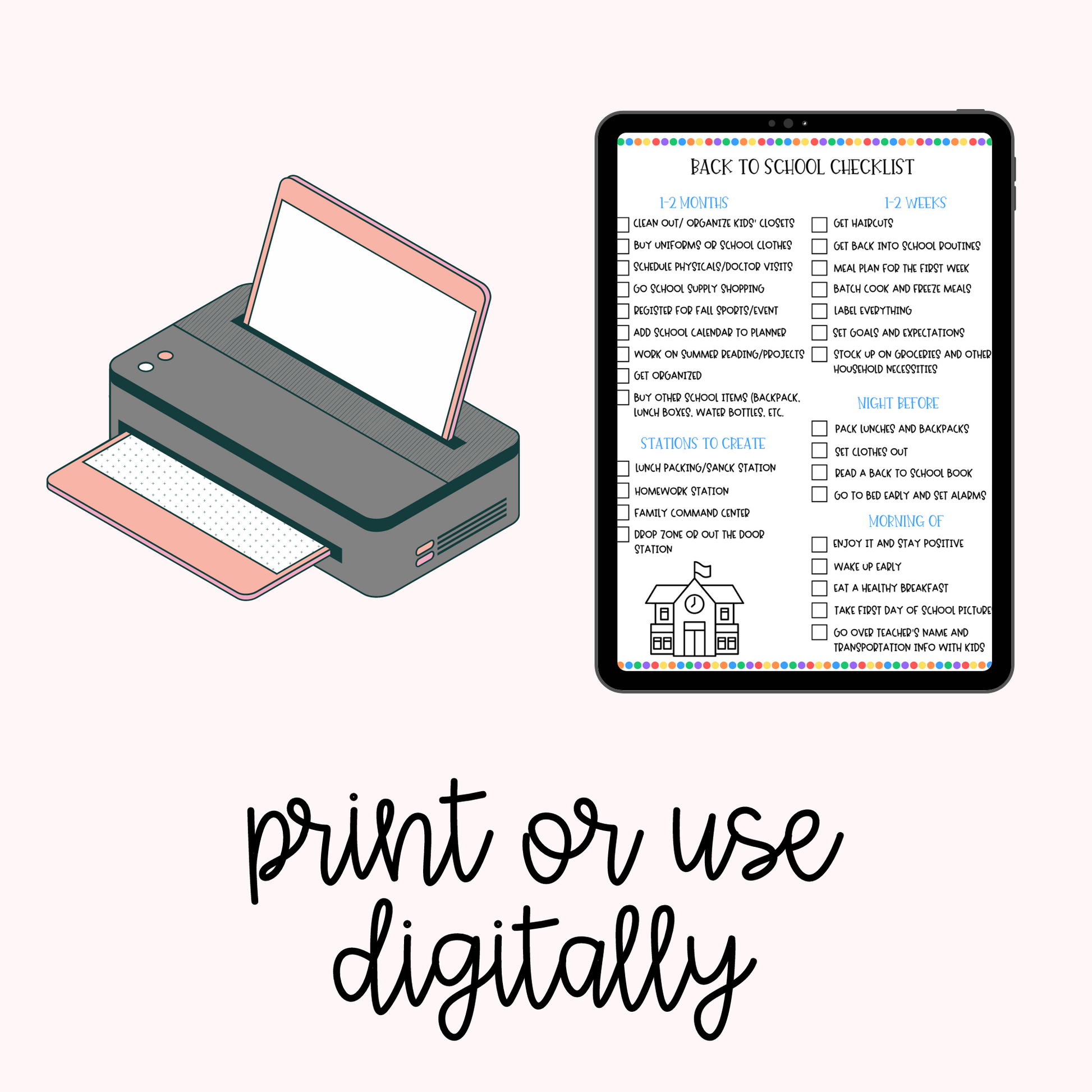 The start of the school year is a busy time for parents and students. Get everything you need to be prepared with The Complete Back to School Bundle. This all-in-one bundle includes a back-to-school checklist, first/last day of school signs, a back-to-school banner, teacher gift tags, lunch box notes and packing guide, routines, checklists, and more.