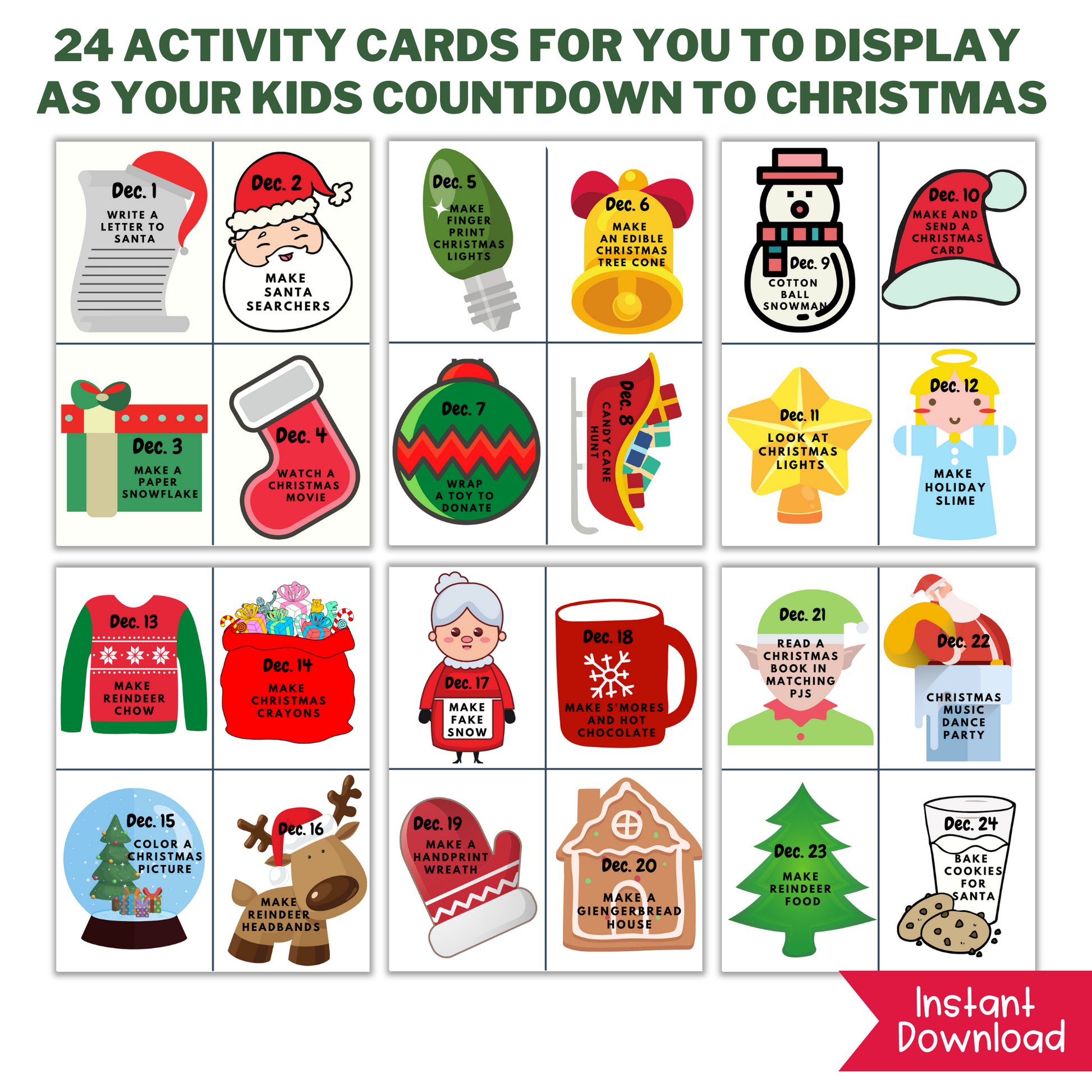 Looking for a fun and festive way to countdown to Christmas this year? Look no further than our Countdown to Christmas Activities! Each day leading up to Christmas, your little ones will enjoy doing one of the 24 fun crafts or activities included in this set.