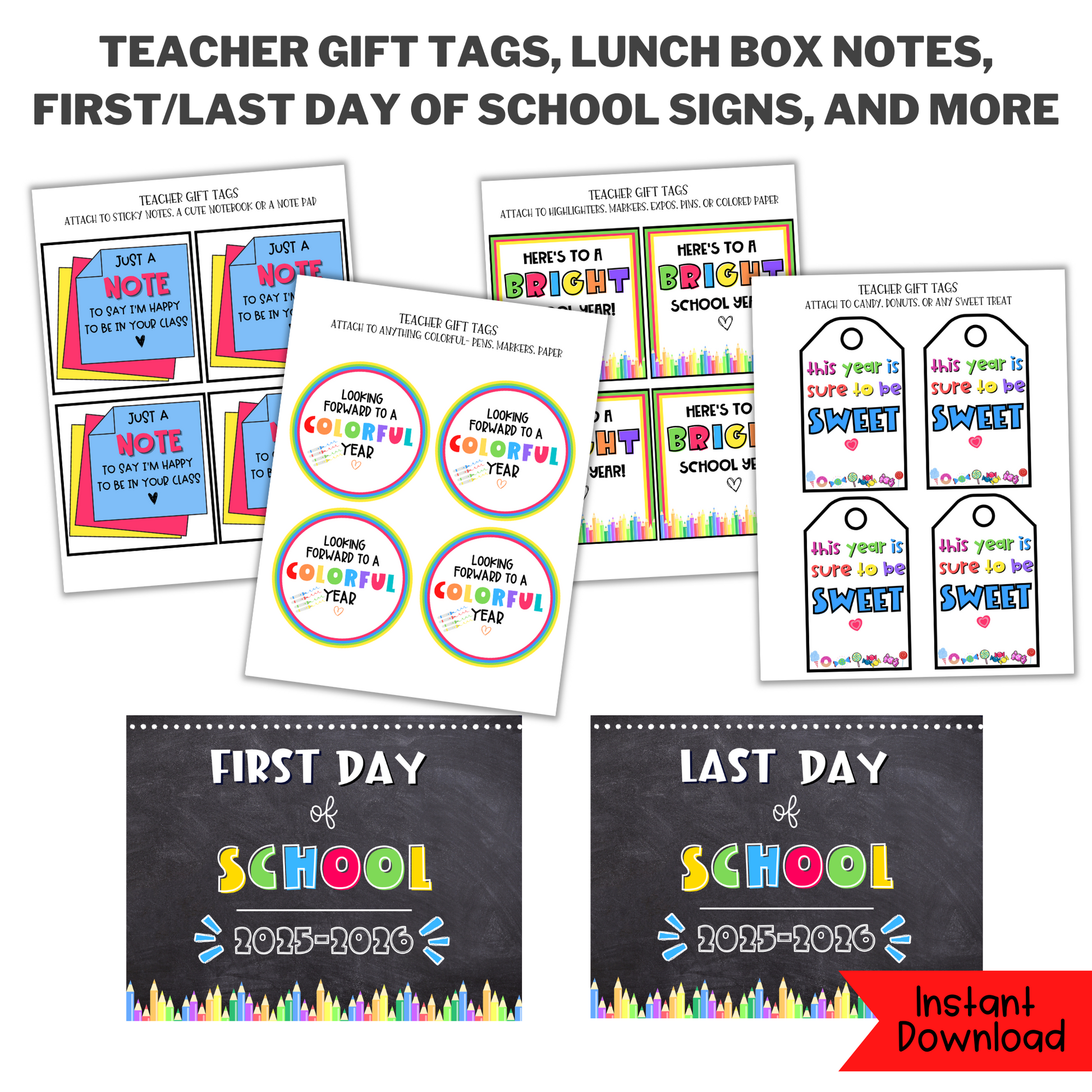 The start of the school year is a busy time for parents and students alike. Get everything you need to be prepared with The Complete Back to School Bundle. This all-in-one bundle includes a back to school checklist, first/last day of school signs, a back to school banner, teacher gift tags, lunch box notes and packing guide, routines, checklists, and more.